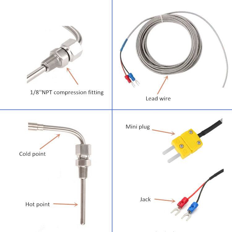 Датчик термопари EGT в основному призначений для автомобільної промисловості та тестування температури вихлопних газів. Загальноприйнятою маркою є тип K, з різним матеріалом оболонки, він може випробовувати температуру до 1000°C.